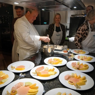 Die Steuerberaterkanzlei Freund & Partner gehört seit vielen Jahren zu unserer treuen Kundschaft. So gab es bereits einige wunderbare Momente im Team Steuer und Finanzen bei der unsere Kochschule hautnah dabei war. Weihnachtliches Erlebniskochen gehörte in diesem Jahr dazu, gemeinsames Zubereiten des 3-Gang-Menüs mit dem Privatkoch Herbert Frauenberger.